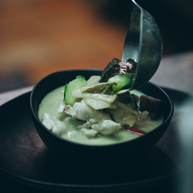 à la fois riche et équilibré en saveurs en se basant sur des recettes traditionnelles et des ingrédients thaïs tout en ajoutant sa touche personnelle avec des innovations dans le process et les produits locaux frais.